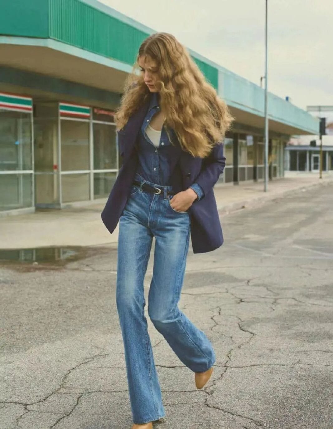 牛仔裤作为服装中的百搭单品,能够与多种风格的上衣搭配,尤其是西装。在春天,牛仔裤的轻盈材质与西装的剪裁形成了极具对比的美感。这种搭配适合不同场合,无论是休闲约会还是参加社交活动,都能让你保持时尚感与舒适感。