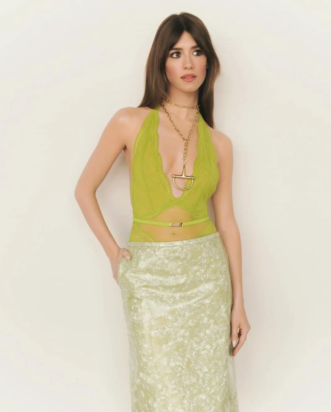 铅笔裙历来是女性时尚的经典单品,它线条简洁、剪裁合体,能够勾勒出优美的曲线。无论是在正式场合还是休闲时光,铅笔裙都可以轻松驾驭。而当我们把铅笔裙与网眼蕾丝紧身衣结合在一起时,这样的搭配展现了独特的性感魅力,使得整体造型更加引人注目。