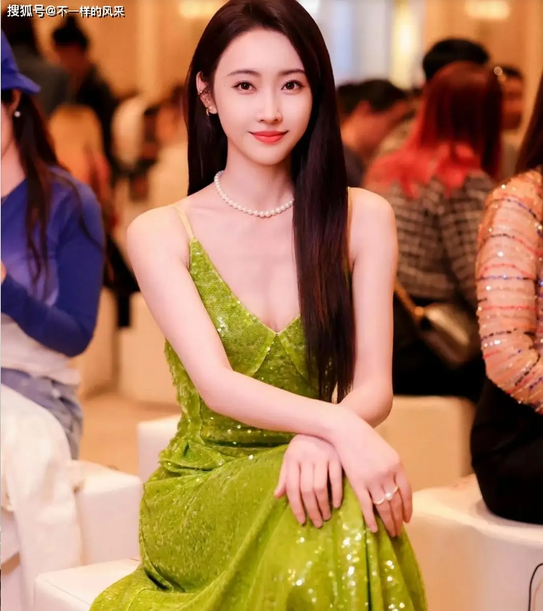 这条荧光绿色吊带连衣裙成为了时尚界的新宠儿,以其独特的剪裁和设计吸引了无数目光。裙子的领口设计完美展现了宣璐的锁骨线条,流露出优雅与清新的气质。同时,裙摆的不规则设计更是为整体造型增添了许多动感,走动间犹如仙女下凡,令人难以移开视线。