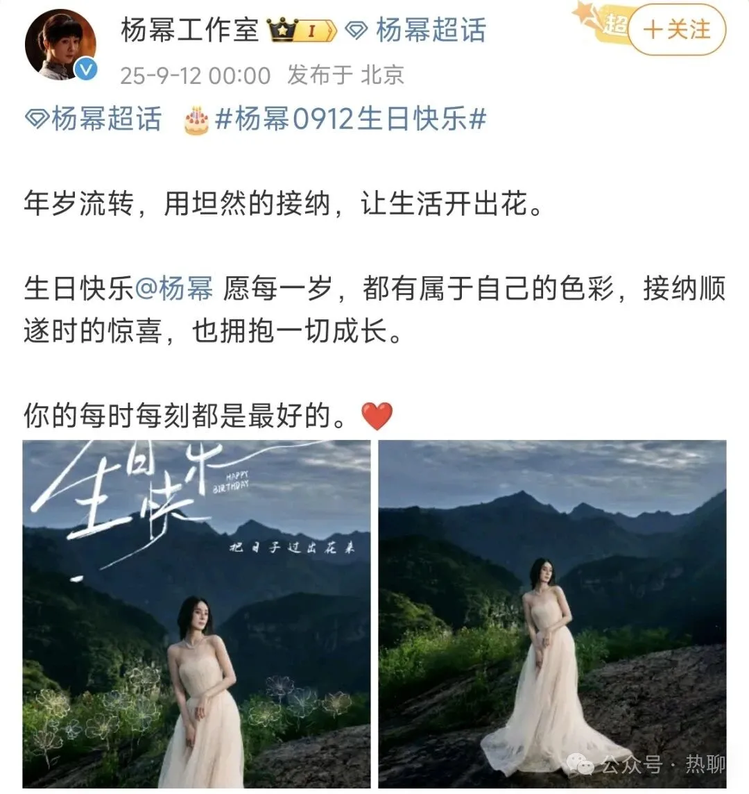 除了明星好友,杨幂的工作室也在官方微博发布了生日祝福,并附上多张她的美照。文案温柔地写道:“年岁流转,用坦然的接纳,让生活开出花。”一句话中透露出她对岁月的豁达态度,也映射出她一路走来的坚韧与优雅。