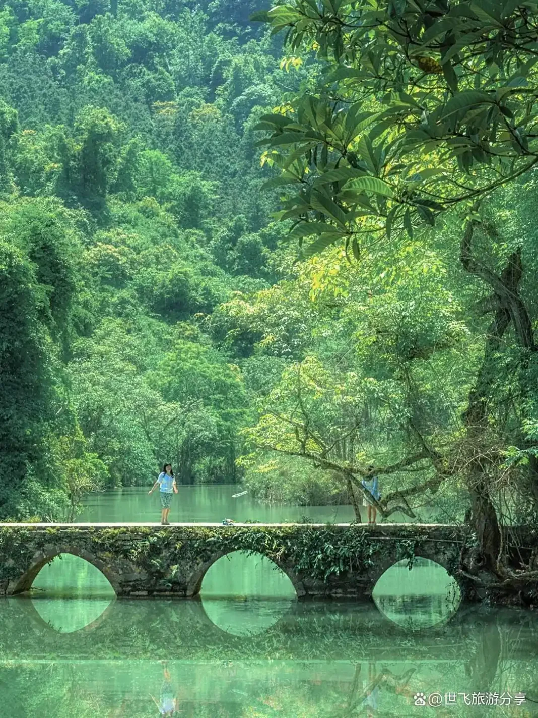 第二天早起,从贵阳出发前往荔波小七孔。车窗外是越来越密的绿意,仿佛整座山都沉浸在绿色梦境中。真正抵达景区时,我明白了它为何被称为“地球腰带上的绿宝石”。