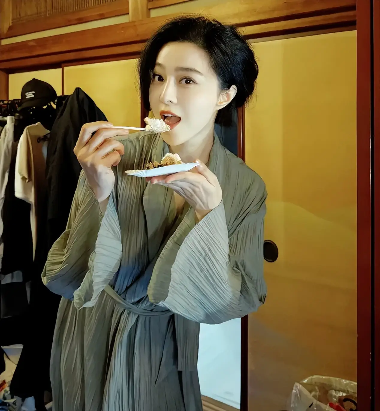 从曝光的剧组照片来看,范冰冰身穿朴素的日式戏服,搭配妆容,散发出浓郁的日系风格,皮肤状态依旧不错。