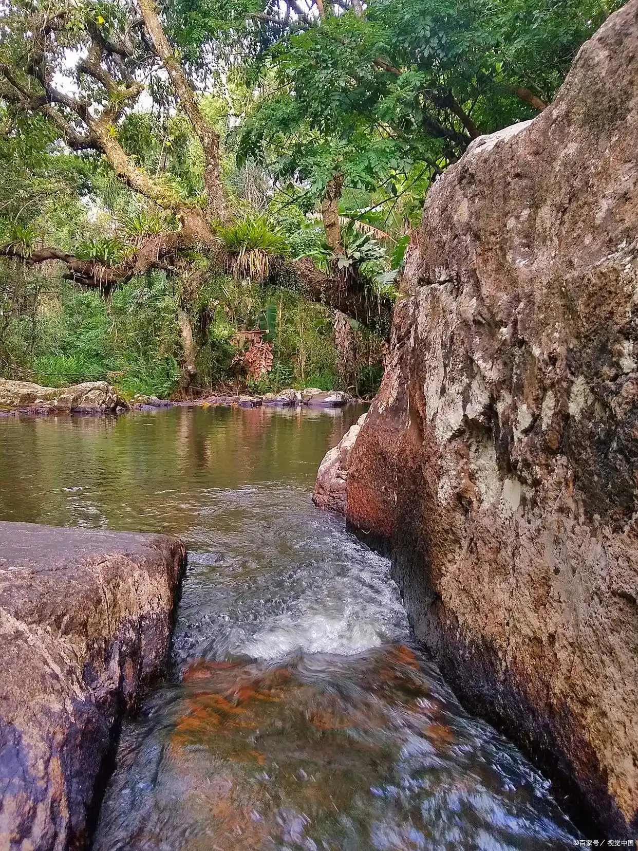 溪流两岸绿意盎然,山石嶙峋,潺潺水声构成天然背景,是拍照打卡的绝佳场所。无论是记录自然风光,还是留下玩水的欢乐瞬间,尤其阳光透过树叶洒在水面时,画面极具层次与美感,让人忍不住按下快门。