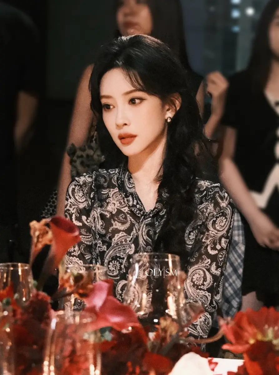 在这组照片中,孟子义坐在一簇鲜花后,犹如画中的公主。她长发披肩,仿佛时间在此刻凝固。这样的背景与衬衫形成了和谐的统一,使得她的整体造型显得更加鲜亮。正如她所展现的,时尚不只是穿着,更是一种内在气质的流露。