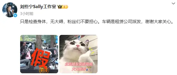 9月19日,刘些宁的工作室在社交平台上发布声明,对此传闻进行了否认。工作室表示,“只是检查身体,无大碍,粉丝们不要担心。”这段文字不仅传达了刘些宁的健康状况良好,也安抚了许多对她健康情况感到忧虑的粉丝。
