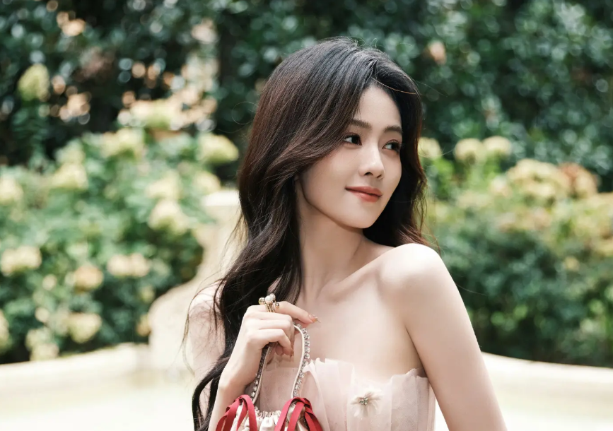 白鹿的粉色花朵抹胸裙以精美的花卉图案为亮点,展现了大胆而清新的时尚理念。裙子的设计恰到好处,完美勾勒出她的身形曲线,使她显得愈加动人。此外,裙子搭配的轻盈面料使得整体造型更加灵动,与她的甜美气质相得益彰。