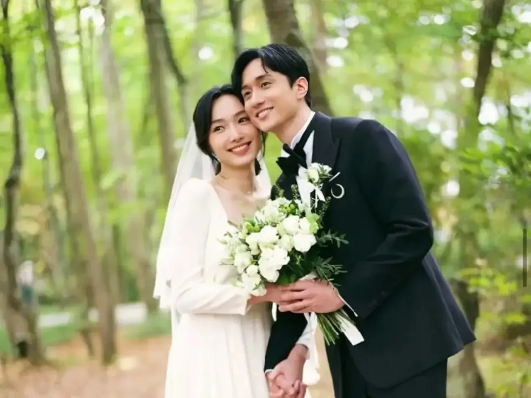 一向以清新气质著称的蔡思韵,这次婚礼造型延续了她的优雅风格——一袭缎面婚纱简约大方、低调不失高级,衬托出她温柔知性的气质。两人在森林户外取景拍摄的婚纱照,也被网友称为“仙气十足”,获一致好评。