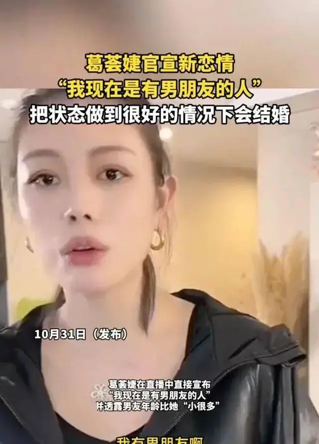 10月30日晚,38岁的葛荟婕在直播中公开新恋情,状态轻松笑容满面。她透露男友比自己小“好多岁”,但“还没到一轮”,并坦言两人已经相处两年,感情稳定。