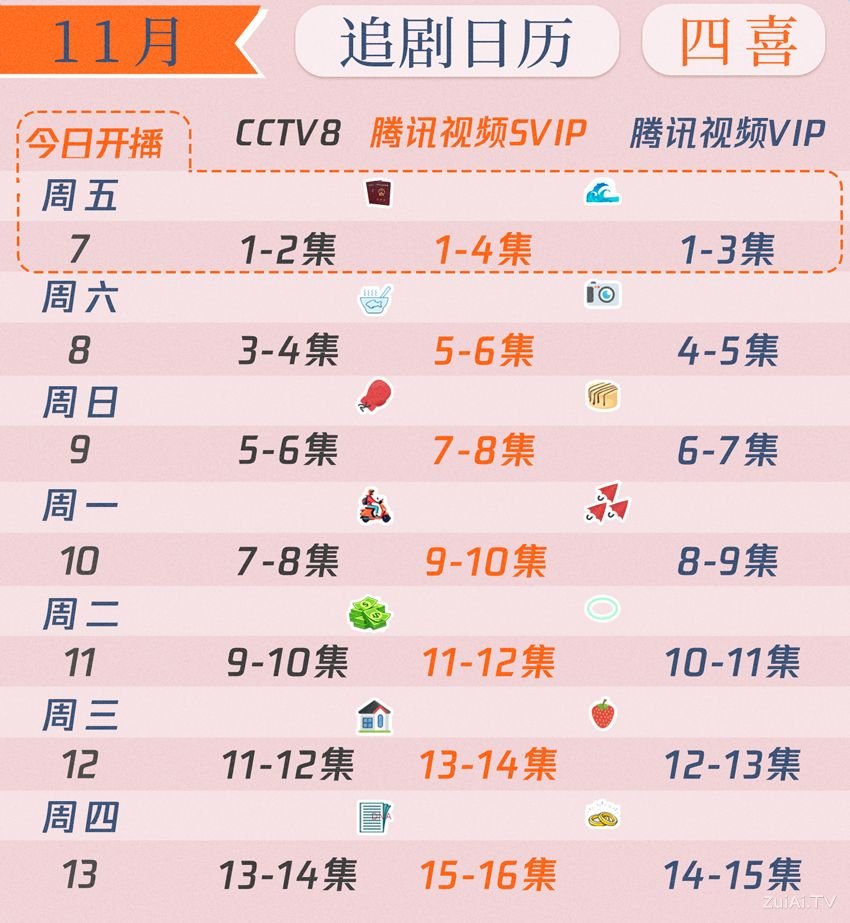 娱乐电视剧日历《四喜》追剧日历及播出安排