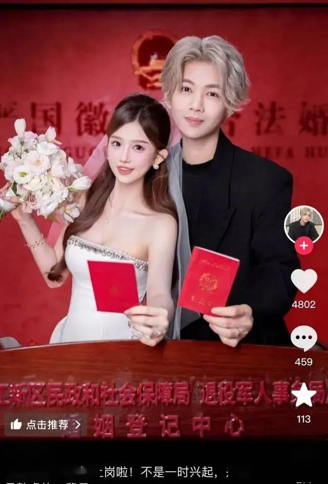 11月5日晚,网红鹿哈晒出结婚证,宣布与女友兔兔饿了领证,短短12小时阅读量破千万,登顶热搜。网友一边祝福真爱,一边质疑蹭热度,争议不断。