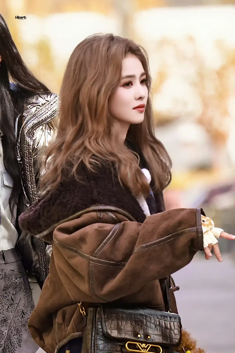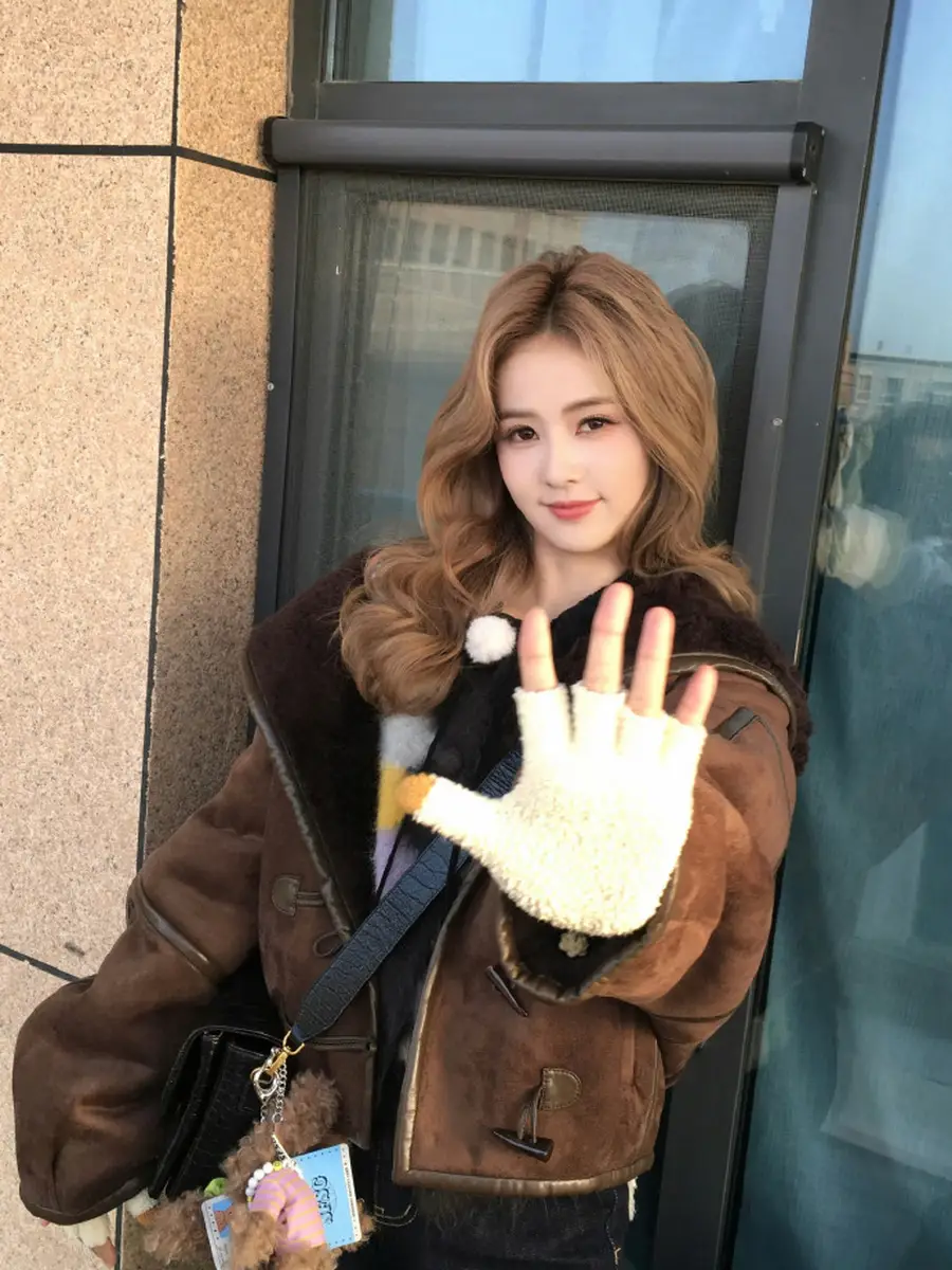 照片中,白鹿以一头金发亮相,搭配一件时尚的麂皮大衣。金发如同芭比娃娃般精致,使她的整体造型更加灵动俏皮。尽管麂皮大衣的设计相对简单,但白鹿通过巧妙的搭配和个人气质,将这件单品的帅气与时尚感发挥到极致。