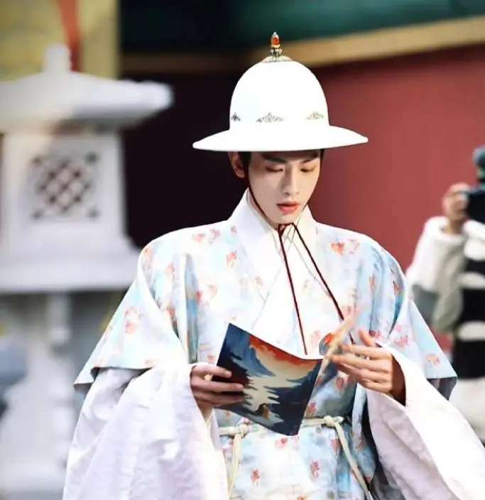 《明月录》的男主辛云来同样收获了不少好评。从路透来看,他的浅色古装造型干净温和,加上复古头饰,整体呈现出明朗亲和的气质,与以往深色官服的肃穆感截然不同。这种明制风格的塑造让角色多了几分少年感,也为剧集增添亮点。同类讨论中,丁禹兮在其他剧中的造型也备受关注,他的红衣与黑帽显得矜贵雅正,同样令人印象深刻。