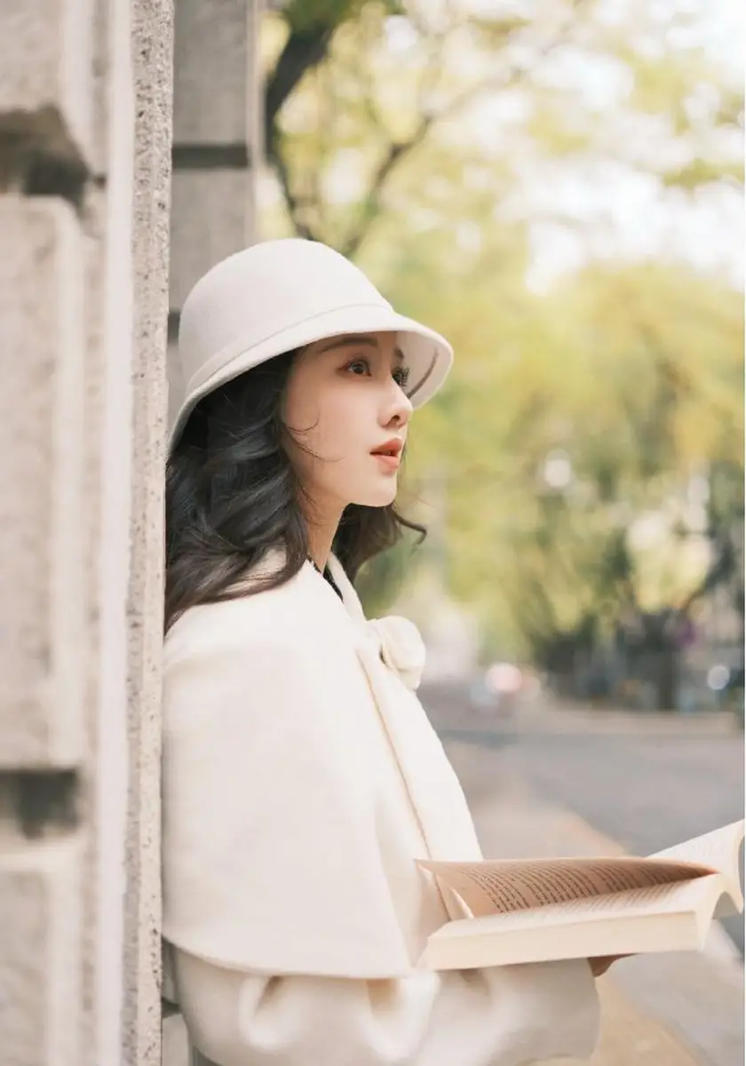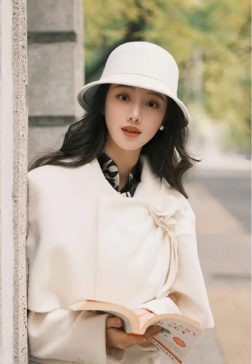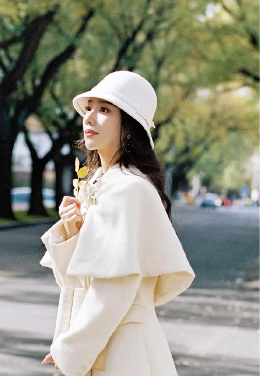 柔和的秋光落在她的侧颜上,恬静又灵动,既有江南女子的温婉,也有民国名媛的独立与从容。她的五官耐看、线条干净,加上一贯清雅端正的气质,在秋景衬托下格外耐拍,像一帧老电影画面缓缓展开。