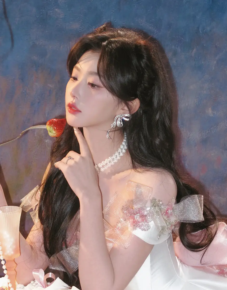 孔雪儿在社交平台分享了一组令人惊艳的美图,展示了她的优雅时尚感。图中的她妆容精致,配搭蝴蝶结耳环与珍珠项链,突出了她甜美的气质,给人以清新如春的感觉。