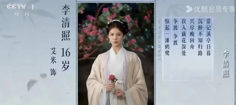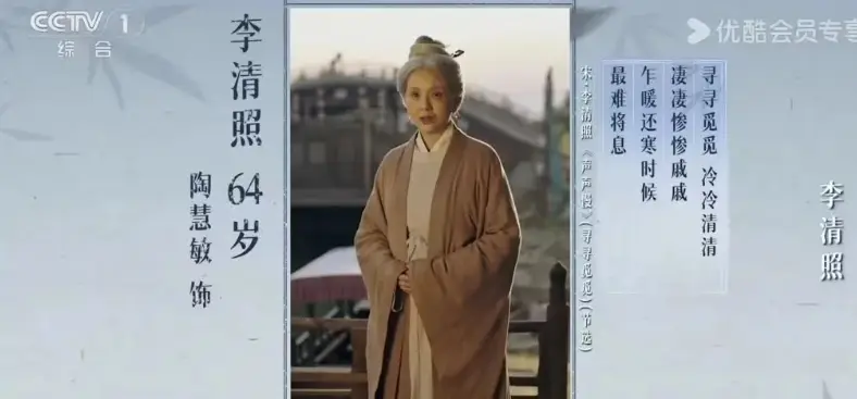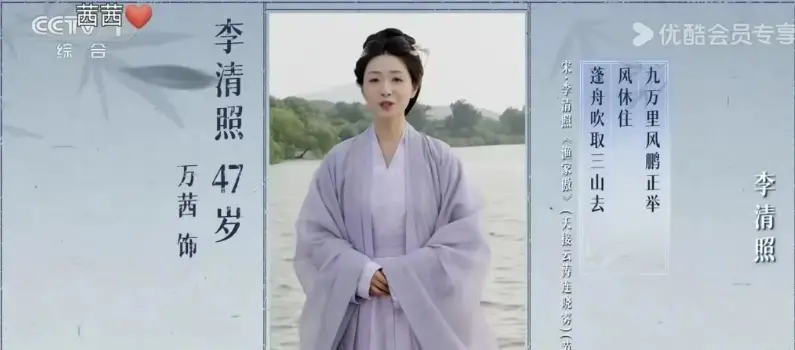 节目中,少女时期的李清照以清新灵动、才情初露的姿态登场,艾米的演绎恰到好处;进入中年,万茜呈现的是李清照在国破家亡后仍坚韧不屈的韧性与深度;到了晚年,陶慧敏以沉静淡然的演技,表现出词人历经风雨后的通透与从容。