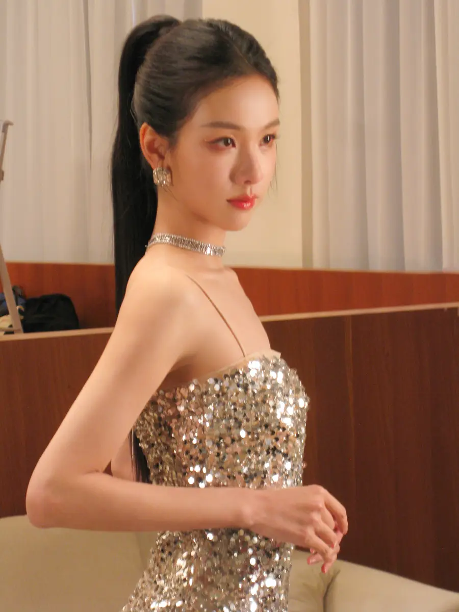 在这组照片中,陈都灵身着一条亮片裙,尽显她的优雅与优美。亮片裙闪耀的光芒与她冷艳的气质相得益彰,衬托出她身上独特的韵味。此外,搭配的钻饰更是为整个造型增添了精致感,让人感受到她对时尚的独到理解。