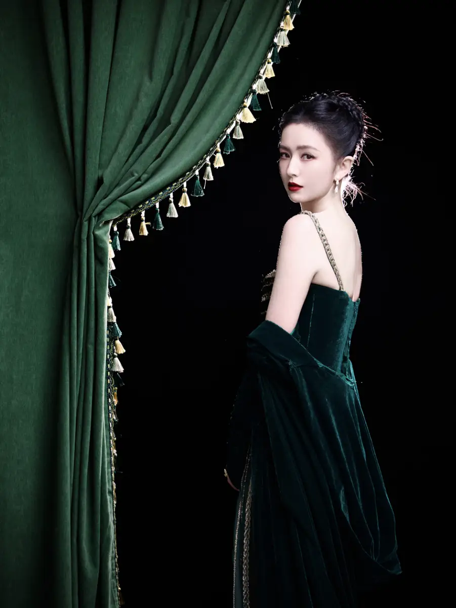 佟丽娅所选择的这款墨绿色丝绒裙,既增添了她的神秘气质,又彰显出她窈窕的身姿。丝绒的材质在灯光下显得格外华丽,细腻的质感与她的肤色形成了美妙的对比,使她看起来既优雅又迷人。同时,裙子的设计恰到好处地展现了她纤美的肩颈线条,完美衬托了她的气质。