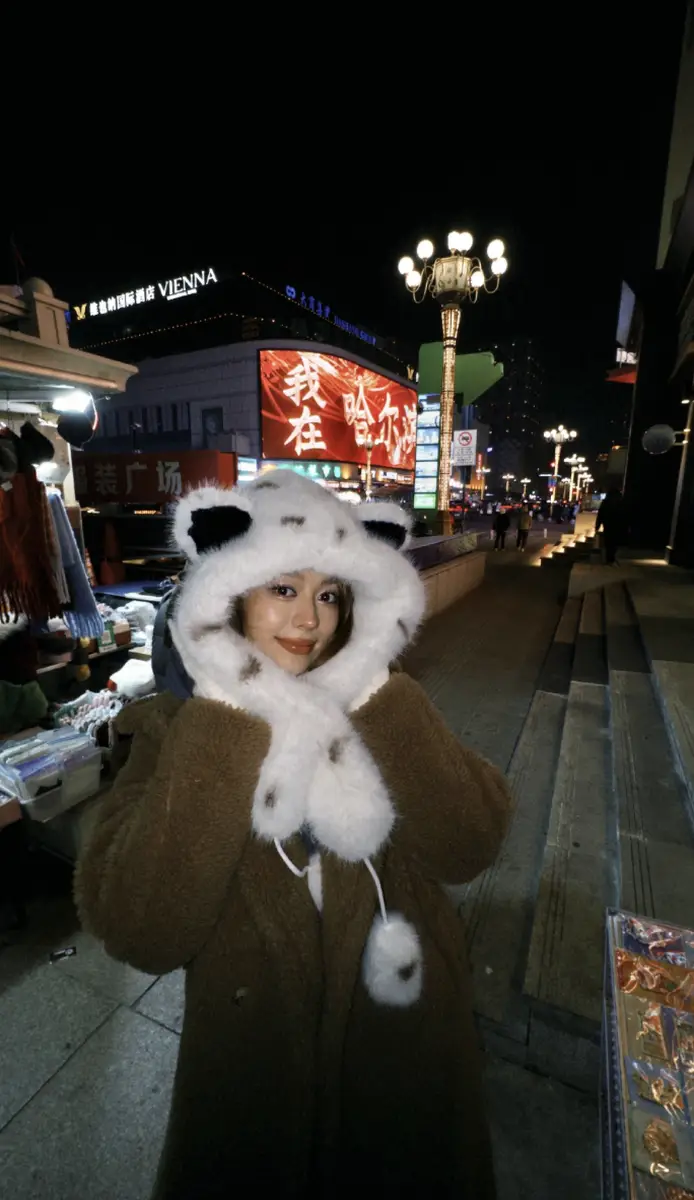 吉娜的哈尔滨冬季之旅:可爱瞬间分享