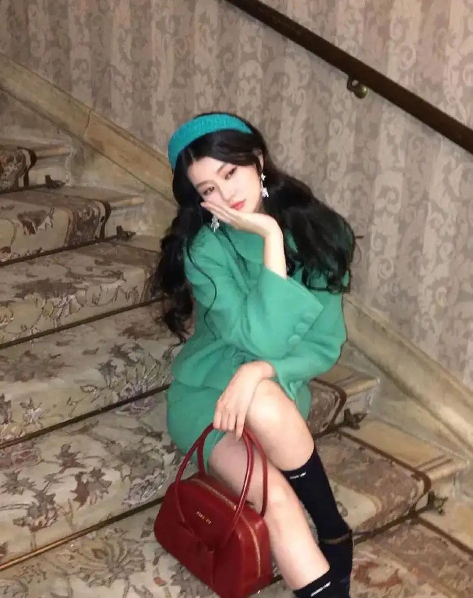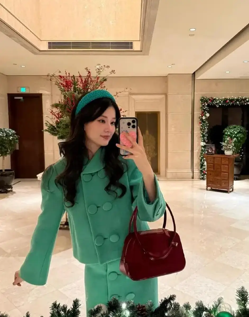 在这次分享中,乔欣身穿一件绿色大衣,外观利落又不失优雅,搭配一只鲜艳的红色包包,呈现出强烈的视觉冲击与时尚感。这种红绿撞色的搭配不仅突出了她的年轻活力,也使得整个人看上去格外抢眼,仿佛一幅曼妙的时尚画卷。