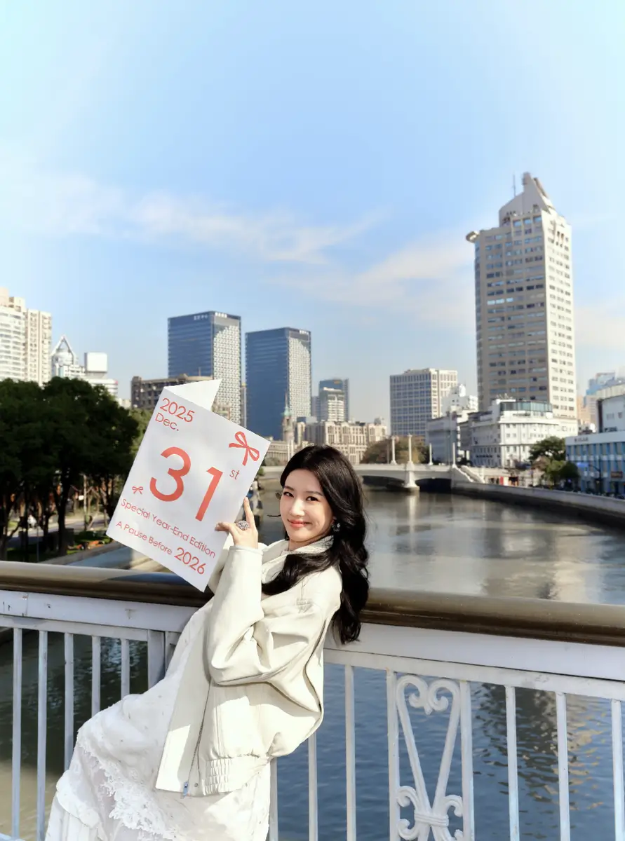 另一组画面里,她举着写有“31”字样的装饰牌,身穿浅调外套,神态松弛而明亮,像是在与时间轻声告别,也在迎接即将到来的新一年。数字不再只是日期的象征,而成为情绪的注脚,让人感受到对未来的温和期待。