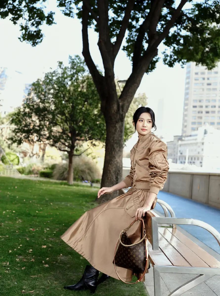 在城市地标前,她与东方明珠进行错位互动,神态俏皮灵动,展现出轻松而自然的一面。河边取景的画面则进一步强化了整体的松弛氛围,背景的开阔与人物的鲜活形成呼应,让整组随拍显得通透而富有呼吸感。