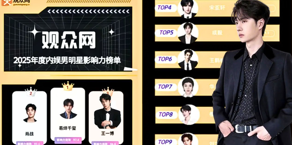 2025 年 12 月 30 日,观众网年度盛典正式公布《2025 内娱男明星影响力榜单》。该榜单基于全年全网数据监测、影视音乐作品表现以及公众互动热度进行综合评估,呈现出当下内娱生态正在发生的结构性变化——实力派与新生代并行,流量不再是唯一标准,作品质量与社会价值正被纳入更重要的考量维度。