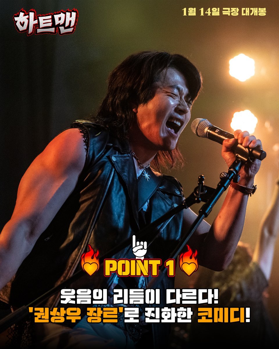 首先备受关注的,是权相佑领衔的喜剧表现力。作为韩国影坛中少数能在动作、悬疑与喜剧间自由切换的演员,权相佑近年来通过《Hitman》系列、《侦探》等作品,逐渐确立了自己在喜剧类型中的独特位置。在《HEARTMAN》中,他饰演的胜民既有面对初恋时的局促与犹豫,也有因秘密缠身而不断闹出笑话的无奈。角色在夸张与真实之间保持平衡,使笑点不流于表面,也让观众在笑声中感受到人物的情感重量。