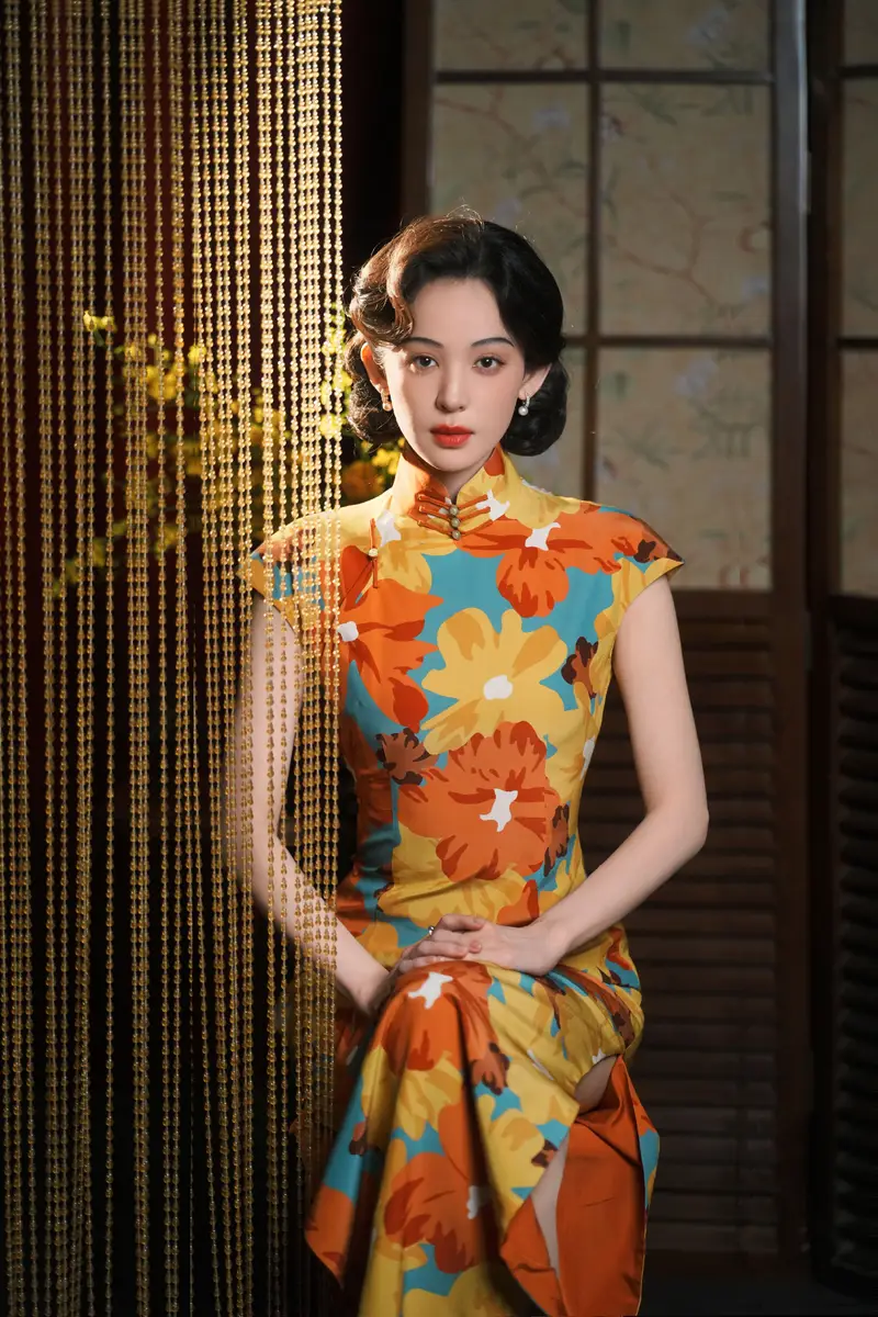 照片里,娜扎的整体造型以传统旗袍为核心,剪裁贴合身形,线条流畅利落,既勾勒出端庄的轮廓,又不失柔和韵味。鲜亮的色彩在镜头中尤为醒目,与她白皙的肤色相互映衬,使整体画面层次分明、视觉舒适。她的五官精致立体,在近景镜头中显得格外养眼,既有古典美感,也保留了现代审美中的清爽气质。