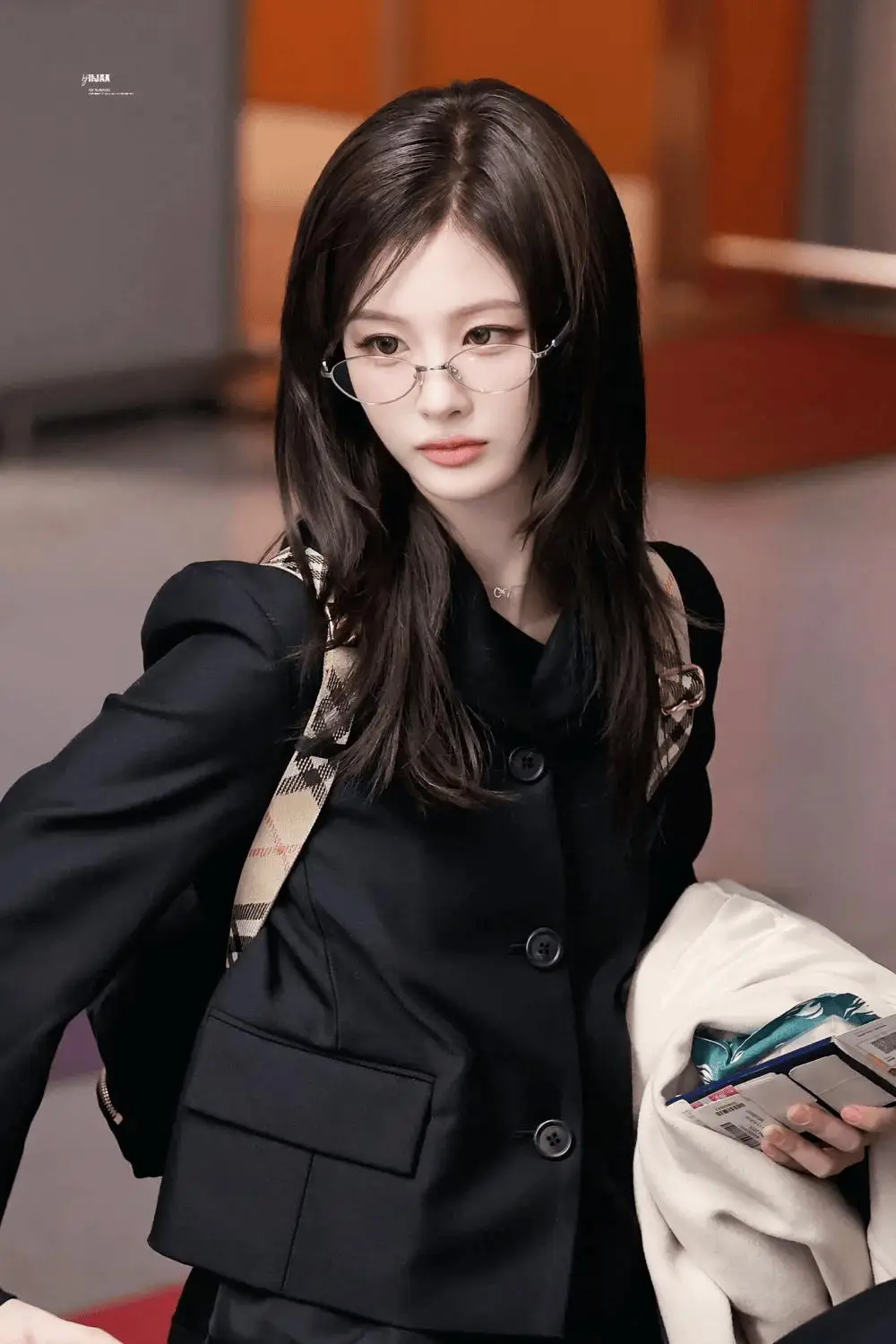 1 月 10 日,Sullyoon 与组合成员一同现身仁川机场。当天,她选择了一套与以往甜美或舞台感风格不同的造型,以偏向“知性风”的穿搭亮相。造型以西装外套与高筒黑靴为主,搭配眼镜与精致妆发,整体呈现出干练而克制的氛围,在视觉上突出其清晰的骨相结构与立体五官。