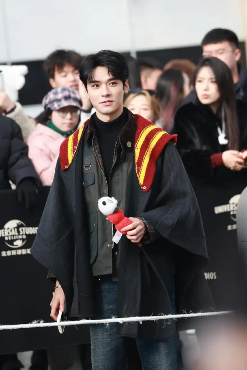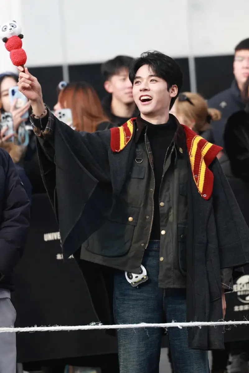 在游玩过程中,龚俊手里拿着《功夫熊猫》的玩偶,成为不少网友关注的细节之一。玩偶与魔法袍的搭配增添了几分童趣,也让画面显得格外生动。据现场目击者描述,他几乎全程拿着手机不停拍照,显然沉浸在乐园的场景与体验之中。