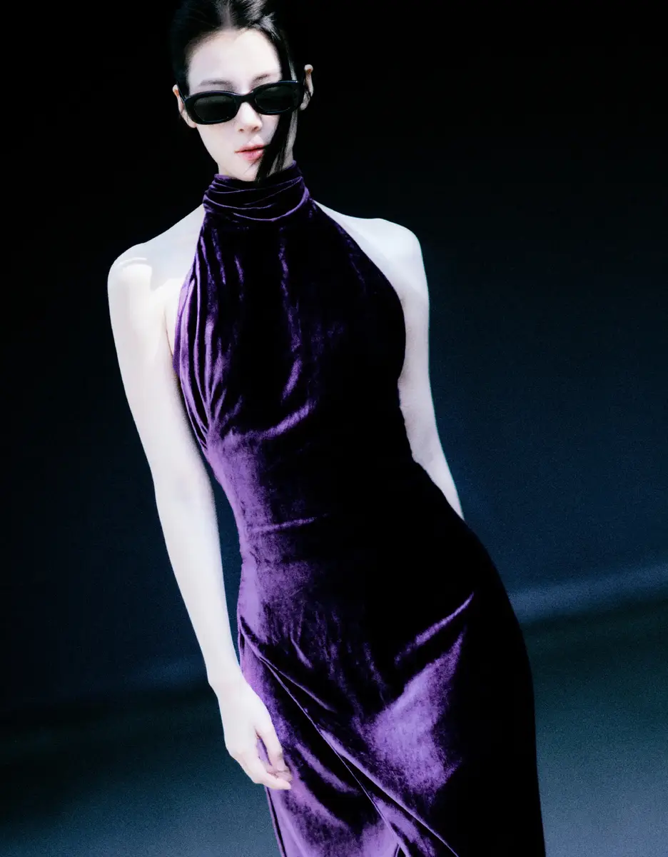 赵昭仪释出全新美图 紫色丝绒裙造型冷峻神秘