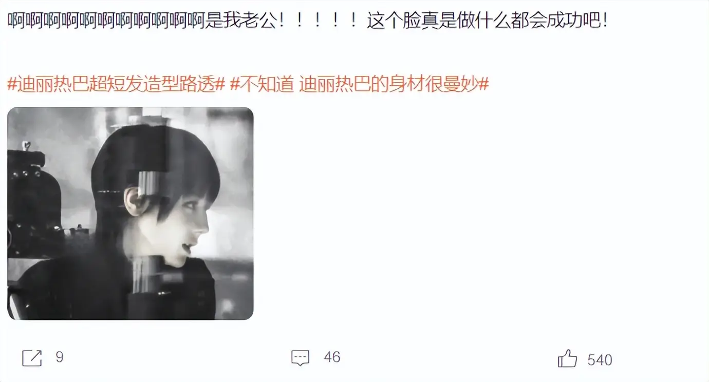 最引发讨论的,是迪丽热巴在《九重天》中的短发造型。长期以长发形象示人的她,此次以短发亮相,给不少观众带来新鲜感。也正因如此,有网友将其与杨紫在《生命树》中的短发造型进行对比。事实上,两人的造型风格和人物设定并不相同,且近年来不少一线女演员都尝试过短发形象,包括赵丽颖、唐嫣、刘诗诗等。对于演员而言,适度改变外形本就是角色需要的一部分。