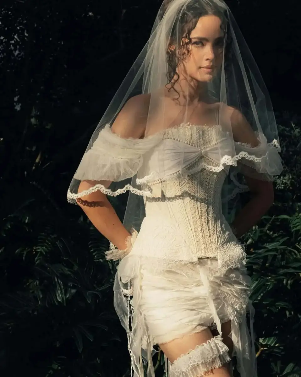 在多张流出的画面中,Yaya或躺或坐于草地之上,神态松弛自在,展现出难得的从容与惬意。而在逆光之下,她静静伫立,轮廓柔和却不失力量感,清冷与优雅并存,呈现出截然不同却同样动人的气质面貌。