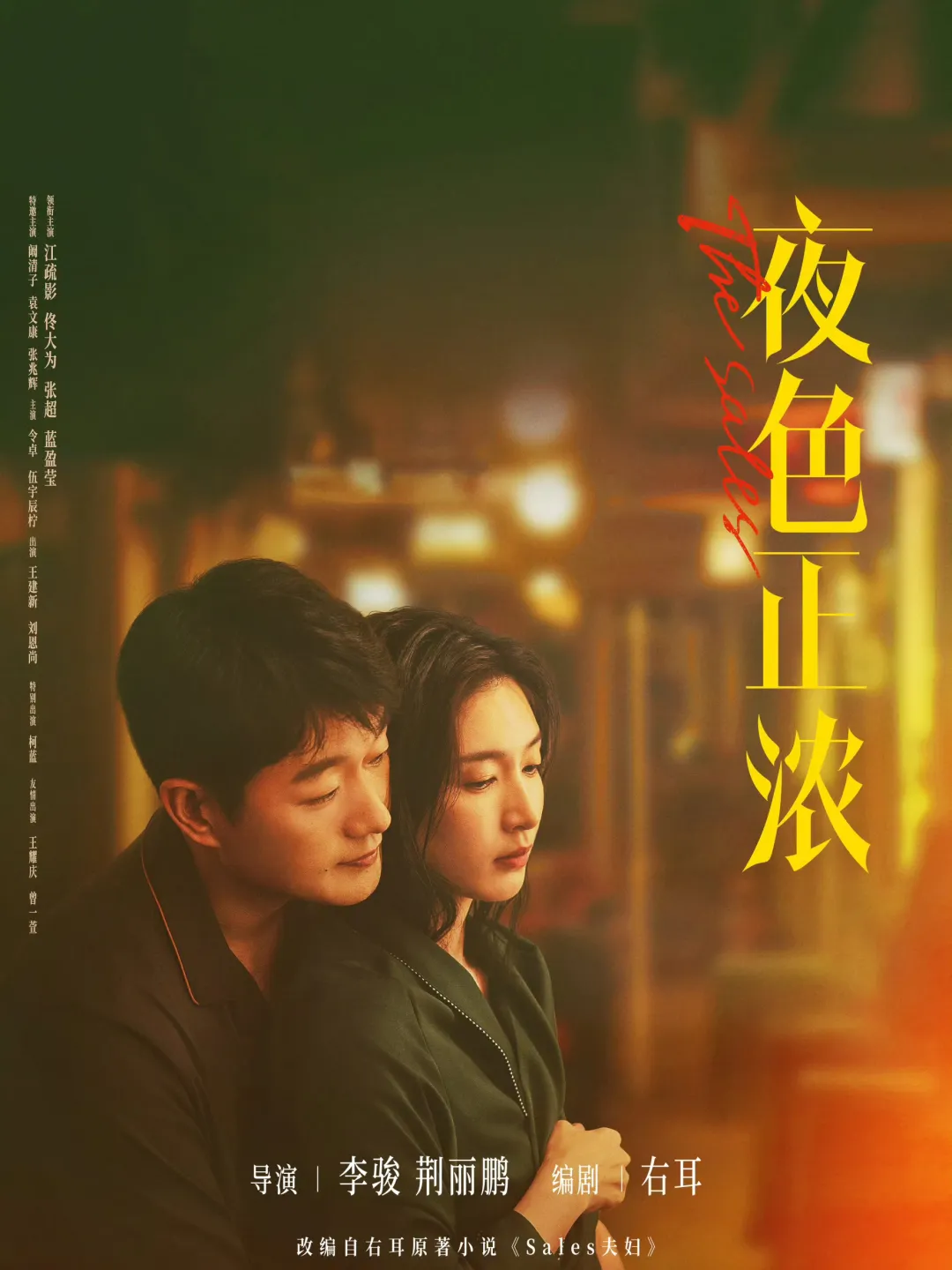 都市情感剧《夜色正浓》由江疏影、佟大为领衔主演,张超、蓝盈莹共同出演,阚清子、袁文康、张兆辉特邀加盟。作品改编自作家右耳的高分小说《Sales夫妇》,以酒业销售体系为切口,将职场竞争与婚姻裂隙交织呈现,勾勒出一幅复杂而现实的都市人性图景。
