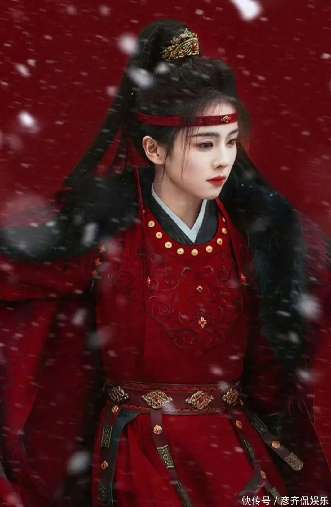 从造型语言来看,该设计并非单纯追求美感,而是服务于角色塑造。抹额所带来的清冷感,弱化了甜美元素,使人物更具锋芒,也增强了画面的戏剧浓度。这种处理方式,在近年来偏向华丽繁复的古装造型中显得尤为克制。