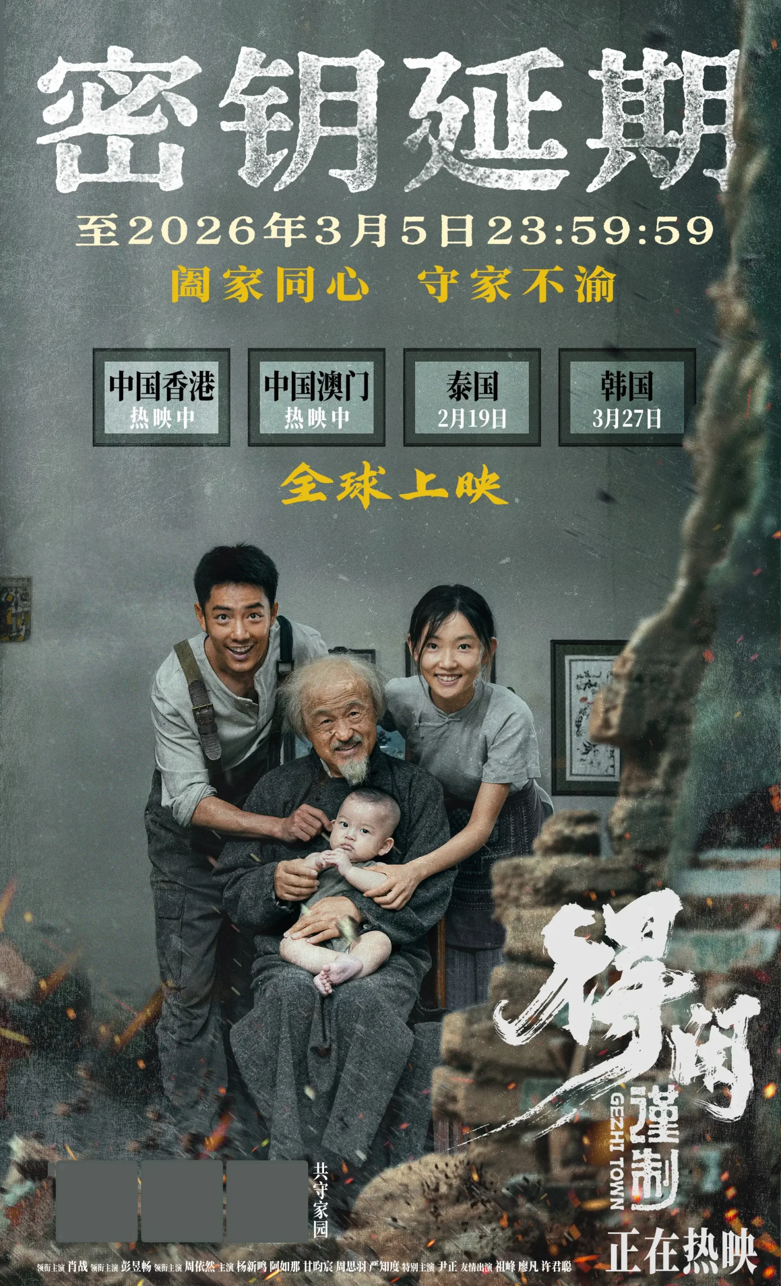 由孔笙执导、兰晓龙编剧,肖战、彭昱畅、周依然领衔主演的电影《得闲谨制》近日官宣密钥延期,上映周期将延长至2026年3月5日。此次延期使影片档期横跨春节档,进一步扩大了观影窗口。
