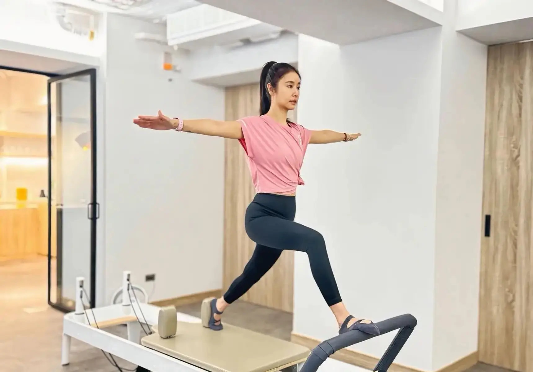 近日,演员林心如在社交平台晒出自己练习普拉提的照片,引发关注。照片中,她身穿粉色上衣,在教练的指导下认真完成多组训练动作,状态专注而投入。