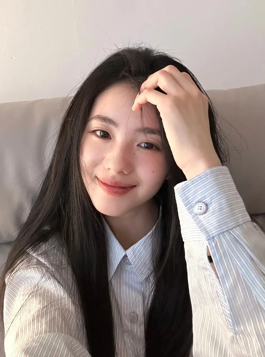 照片中的她以素颜状态出镜,整体妆感清淡自然,肌肤呈现出通透细腻的质感。画面风格偏向生活化,光线柔和,氛围轻松随性。