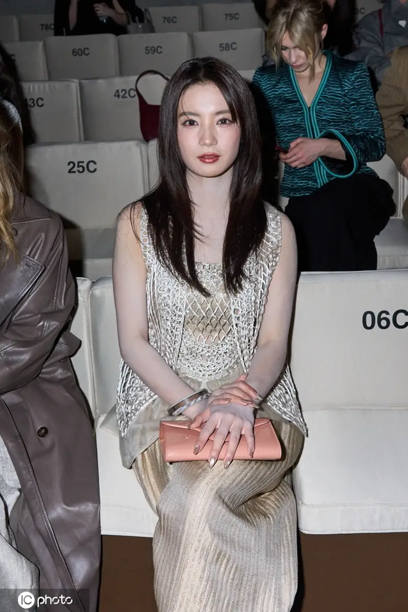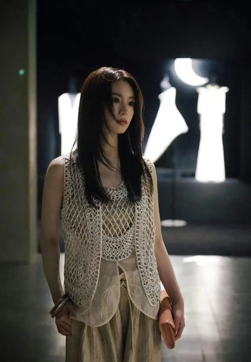 当天,张雅钦留着顺直长发,身穿镂空蕾丝背心,整体搭配干净利落,却不失层次感。简洁的剪裁勾勒出利落线条,蕾丝元素则为造型增添柔和与细节。她举手投足之间松弛自然,将优雅感与时装感拿捏得恰到好处。