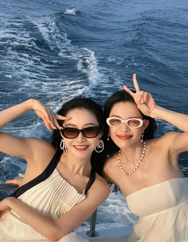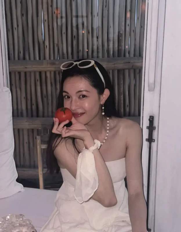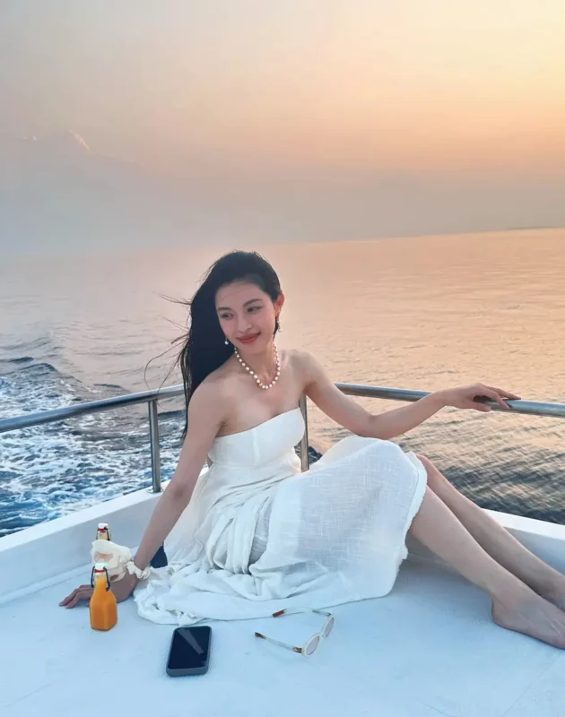 除了端庄优雅的一面,钟楚曦在部分照片中还流露出俏皮神情,带有几分微醺般的松弛感,为画面增添了灵动气息。轻松随意的状态,让整组度假照更具生活感与真实感。