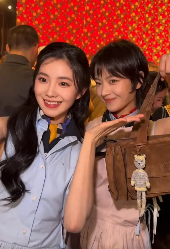 除了合影之外,刘浩存 与 李庚希 还对着手机镜头一起打招呼。两人神情活泼,气氛显得十分轻松。现场画面中,两位演员颜值在线,状态明亮,展现出年轻演员特有的活力与亲和力。