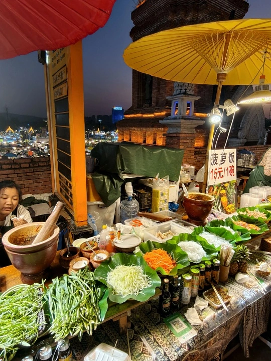 西双版纳星光夜市:澜沧江畔的灯火与美食盛宴