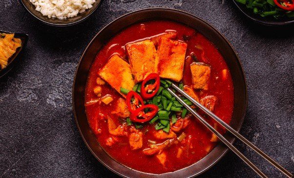 汤底通常以小鱼干、海带或肉类熬制,再加入韩式辣椒粉与辣酱,形成香辣浓厚的味道。滚烫的石锅端上桌时,汤仍在沸腾,常常会加入生鸡蛋,使口感更加顺滑。这种“现煮现吃”的形式,也增强了用餐的体验感。