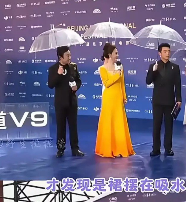在北京国际电影节开幕式上,主持人翟优因在暴雨中的表现引发广泛讨论。她身着明黄色礼服在露天环境下主持,随着雨势持续,裙摆逐渐被雨水浸透,颜色由亮黄转为橙色,这一变化被镜头记录并迅速在网络传播。